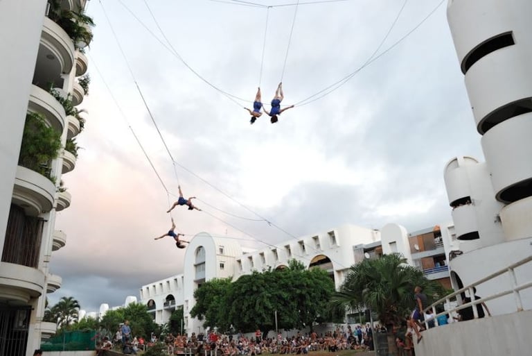 « S’ensuit une autre surprise jamais vue à La Réunion avec la compagnie Retouramont qui [offre] deux propositions de leur travail […]. [Les danseuses] glissent, dansent, se hissent, sautent, se balancent dangereusement en donnant le sentiment d’une liberté propre aux oiseaux. C’est stupéfiant de beauté, d’originalité et surtout de maîtrise de soi. Un rêve ! »